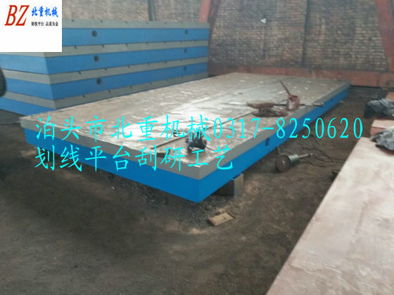 劃線平臺(tái)又稱劃線平板是用于劃線或鉗工劃線的基礎(chǔ)平板,北重劃線平臺(tái)的使用是根據(jù)產(chǎn)品圖樣的尺寸要求,T型槽劃線平臺(tái)工作面上可以設(shè)計(jì)圓孔、長(zhǎng)方孔和T型槽等主要用來固定工件,以便操作。