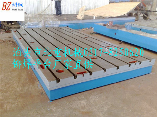 鑄鐵鉚焊平臺是鉚焊工作的基礎工作臺.北重鉚焊平臺為了滿足鉚焊工藝需求,鑄鐵平臺臺面加工縱向或橫向T型槽,適當位置加工圓孔,鉚焊平臺采用HT200-300灰鐵鑄造而成.鉚焊平臺臺面經過人工刮研處理.在鉚焊工作中其作用不容小視.使用鉚焊平臺運用到工作中,可提高工作效率,增強產品質量.