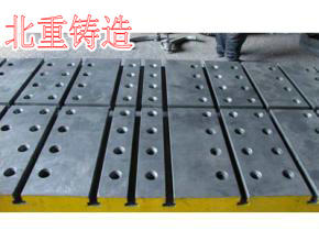 鉚工鉚焊平臺選用高強度鑄鐵HT200-300材質,在鉚工鉚焊平臺工作面上有用來清理鉚焊殘余鐵渣、焊接廢棄物的孔和固定焊接件的T型槽,鉚工鉚焊平臺工作面采用原始的人工刮研工藝。